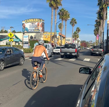 Turquoise Street, Pacific Beach will lose its cool vibe if a 240'H tower gets built by the 5 palm trees on the left