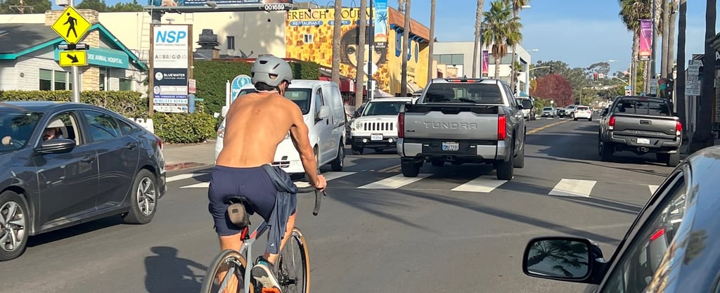 Below: Turquoise Street, Pacific Beach. Permit request for 240'H tower with above ground parking garage for 300 cars to get built on the left