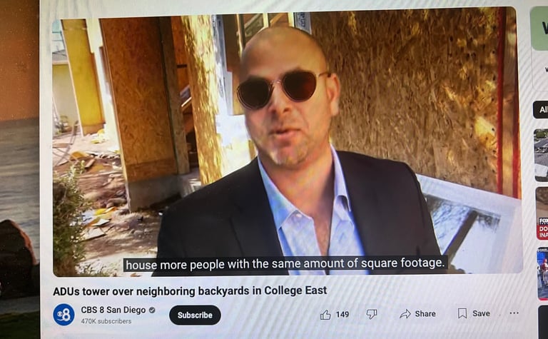Channel 8 San Diego: neighbors fight back against development of 136 ADUs https://www.youtube.com/watch?v=DNidkesotcg