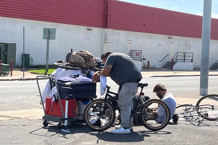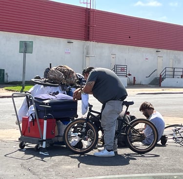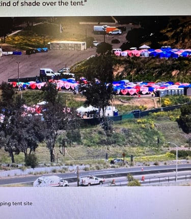 One of two safe sleeping tent sites, near downtown. Accessory Dwelling Apartment Buildings, many built by SDRE, get the approval of Mayor Gloria by his land use and housing advisor Christopher Ackerman-Avila