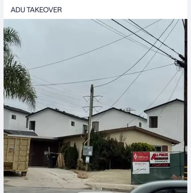 Without showing concern for locals, San Diego's Mayor Gloria revised the density bonus law to allow Accessory Dwelling Apartment Buildings (above) that are not accessory but bigger than the main house, don't complement the neighborhood and ruin the privacy of adjacent neighbors.