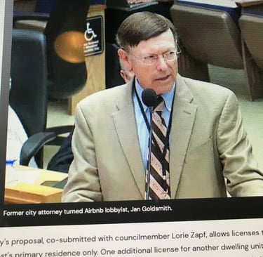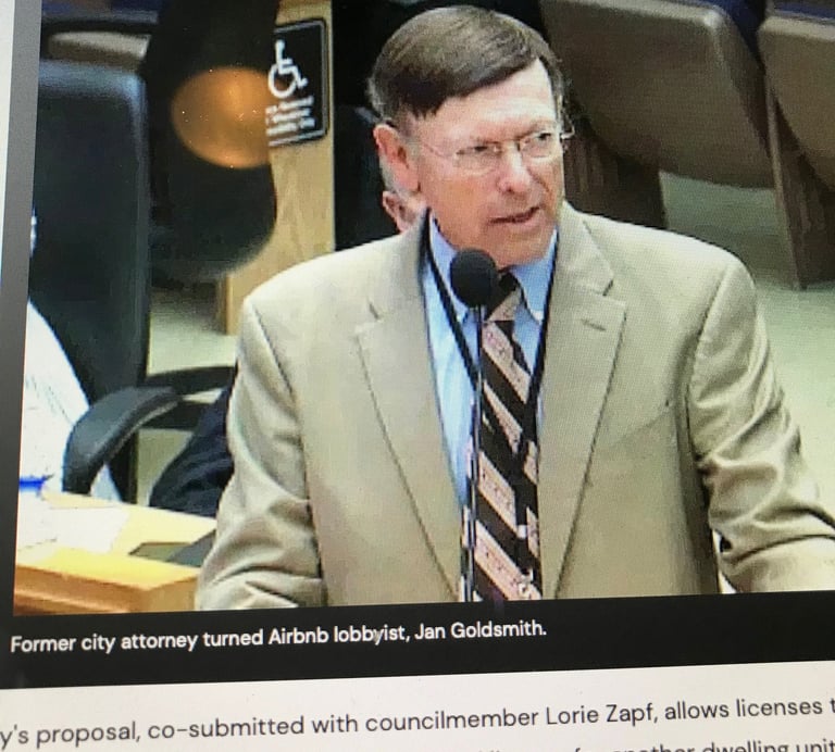 Our former city attorney became a lobbyist for Airbnb. Goldsmith instructed the company on how to stop the ordinance in 2015 so they could expand in San Diego before their Wall Street IPO.